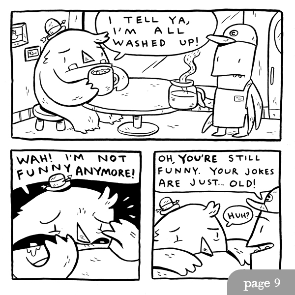 The original black-and-white artwork for the minicomic Joke, Andy, Joke, part of the Monster Town series.