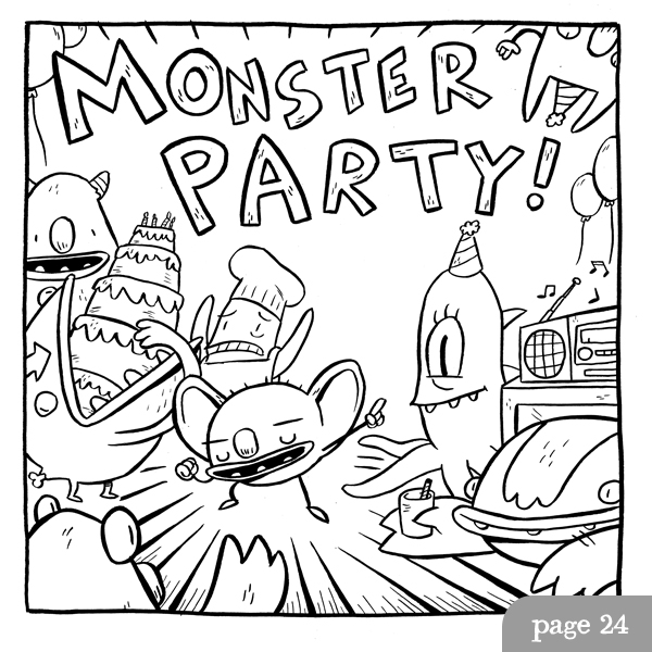 The original black-and-white artwork for the minicomic Listen, Stanley, Listen, part of the Monster Town series.